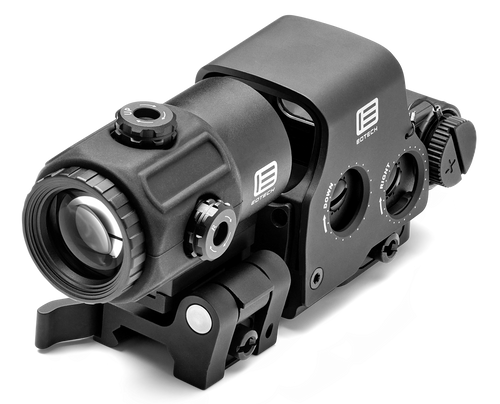 The EOTECH G43 is a compact 3X magnifier designed for fast transitioning between magnified and 1X viewing. It features a miniaturized design weighing 11.3 oz with 2.5 inches of eye relief, and comes with a switch-to-side mounting system compatible with all HWS models.