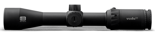 The EOTech Vudu X is a 1-6x24mm low power variable optic with a 30mm main tube and second focal plane design. It features a daylight bright illuminated DP1 reticle, aircraft-grade aluminum construction, capped turrets, and a removable throw lever for quick magnification transitions. With 0.5 MOA adjustments, 3.3-3.9 inches of eye relief, and a matte black finish, this scope weighs 17.8 oz and measures 10.3 inches in length.