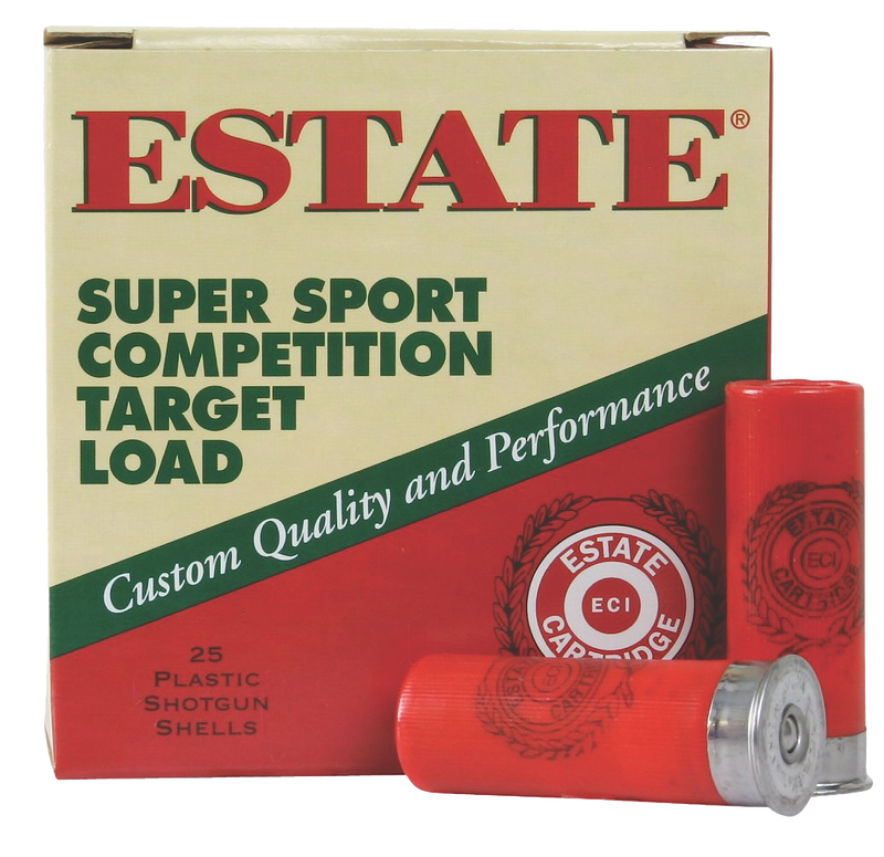 Estate Cartridge Super Sport is a 12 Gauge 2.75" shotshell loaded with 1 1/8 oz of #8 lead shot at 1200 fps muzzle velocity. Designed for competition shooting and clay target sports, these shells feature extra-hard shot for tighter patterns and improved accuracy. The plastic casing makes this an economical choice for high-volume shooting.