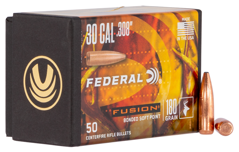 Federal Fusion Component bullets are designed for reloading hunters who want to build their own ammunition using proven Fusion projectile technology. These .308 diameter bullets feature a 180 grain weight with a copper jacket and lead core in a soft point configuration, ideal for rifle hunting. Sold in boxes of 50 bullets per box, with 4 boxes per case.