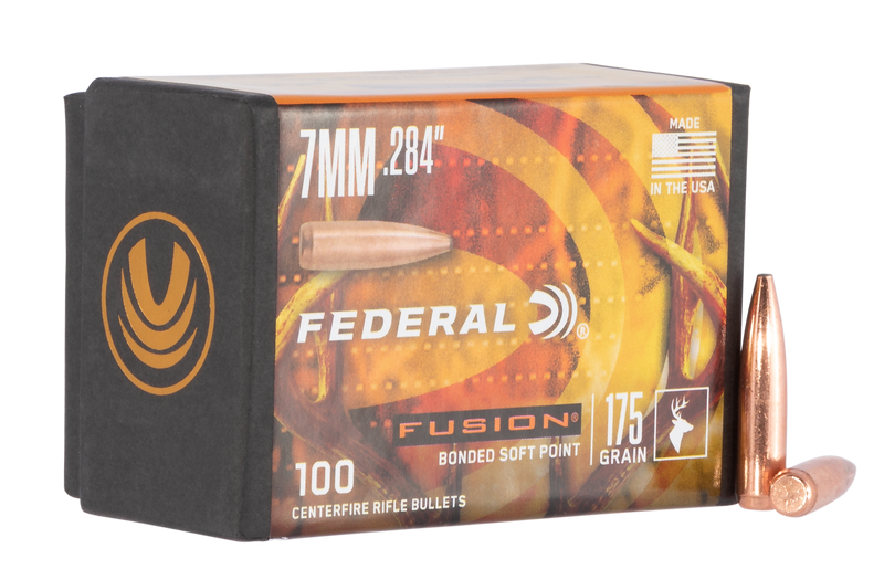 Federal Fusion Component bullets are designed for reloaders who want to load their own ammunition with proven Fusion projectile technology. These .284 caliber, 175-grain soft point bullets feature a copper jacket with a lead core for reliable expansion and performance in hunting applications. The box contains 100 bullets per unit.