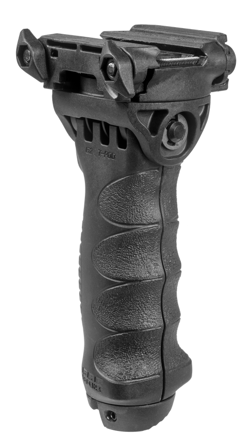 This tactical folding foregrip is compatible with 1913 MIL-STD Picatinny rails and works on both handguns and rifles. The black polymer grip quickly transforms from horizontal to vertical position without interfering with handgun firing, and features an easy quick-detach mechanism for fast adaptation and removal.
