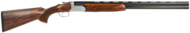 The Fausti Caledon is a 12-gauge, 3" break-action shotgun with a 26" blued barrel and engraved stainless receiver. It features a wood laser-grain stock, metallic bead front sight, and fixed Modified/Full chokes. This over/under configuration weighs 7.25 lbs and measures 33.2" overall with a tang safety.