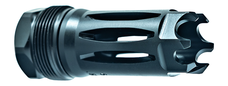 The Faxon Muzzlok SS Plan B is a stainless steel flash hider designed for rifles with 1/2x28 threaded muzzles and .250" bore diameter. This muzzle device reduces muzzle flash while maintaining a compact profile and threads directly onto standard AR-15 style barrels.