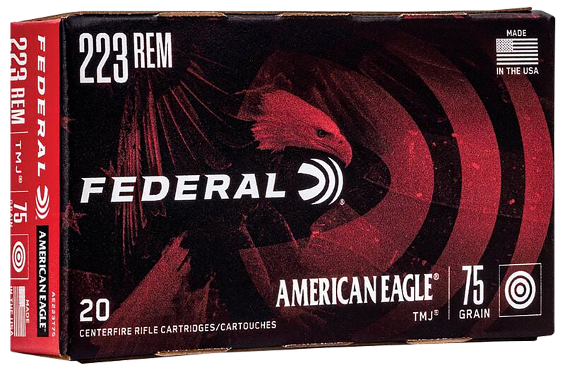 Federal American Eagle .223 Rem 75gr Total Metal Jacket Rifle Ammo, 20rd Box - AE223T75