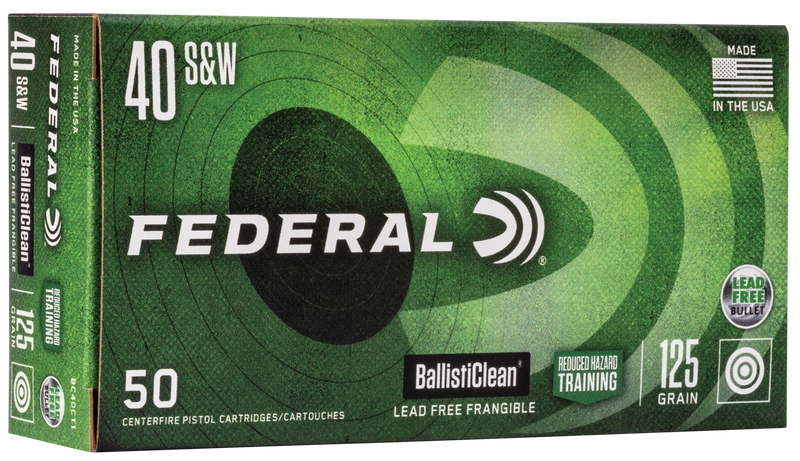 Federal BallistiClean 40 S&W 125gr Lead-Free Frangible Handgun Ammo, 50rd Box - BC40CT1
