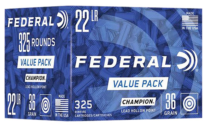 Federal Champion Training Brass .22 LR 36gr Lead Hollow Point 325 Round Box - 749
