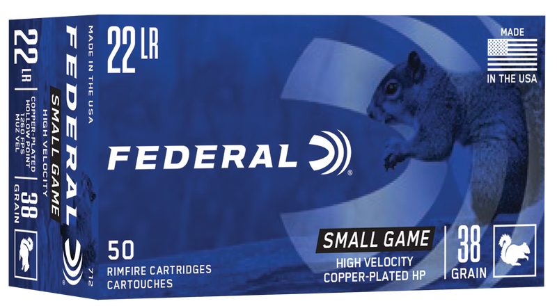 Federal Game-Shok Brass .22 LR 38gr Copper-Plated Hollow Point 50 Round Box - 712