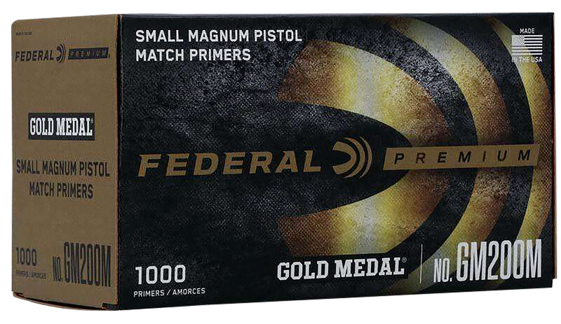 Federal Gold Medal primers are manufactured to exacting tolerances for match-grade precision and consistency in handgun reloading. These small magnum pistol match primers provide reliable ignition and are built to extremely tight specifications. Sold as 1000 primers per box.