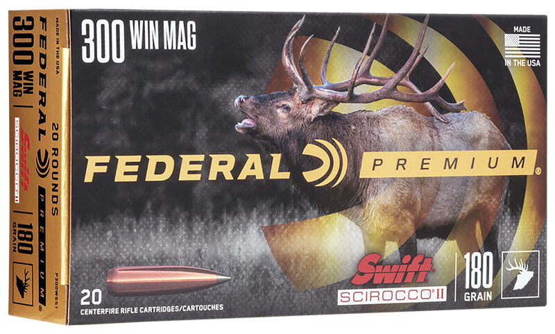 Federal Premium 300 Win Mag 180gr Swift Scirocco II Rifle Ammo, 20 Per Box - P300WSS1