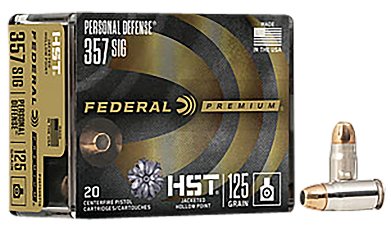 Federal Premium Personal Defense 357 Sig 125gr HST Jacketed Hollow Point Handgun Ammo, 20rd Box - P357SHST1S