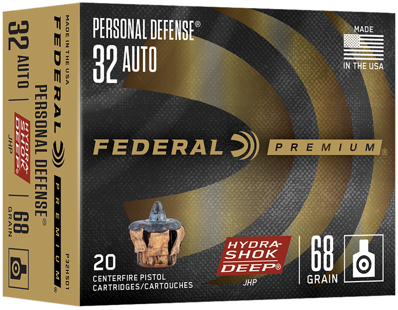 Federal Hydra-Shok Deep Personal Defense 32 ACP 68gr Jacketed Hollow Point - P32HSD1