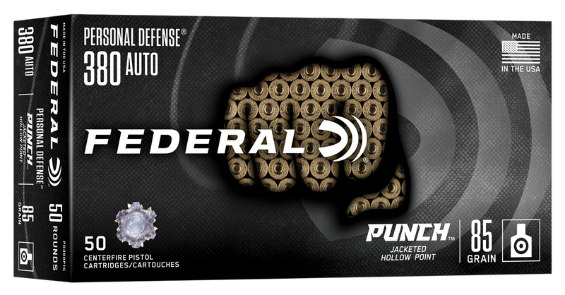Federal Punch .380 ACP 85gr Jacketed Hollow Point Handgun Ammunition, 50/Box - PD380P1G