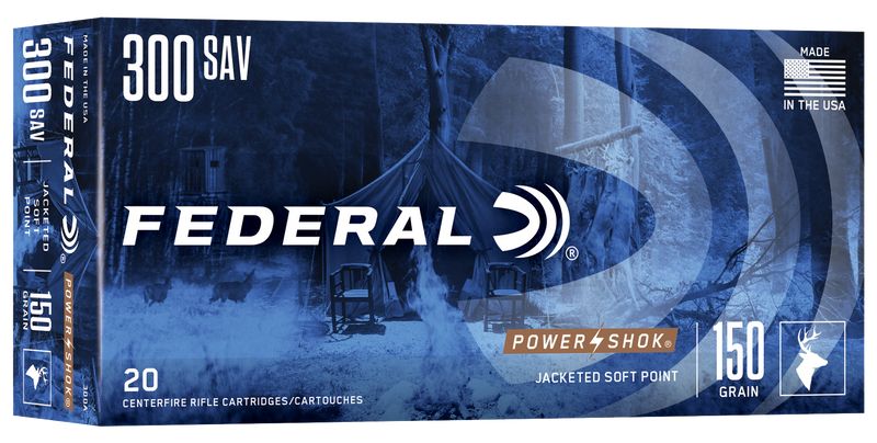 Federal Power-Shok 300 Savage 150gr Soft Point Rifle Ammo, 20-Round Box - 300A