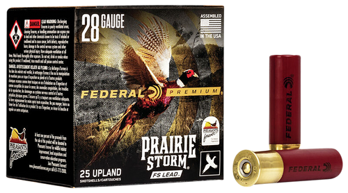 Federal Premium Prairie Storm FS shotshells are 12 gauge 2.75" loads featuring #6 lead shot at 1.25oz with a muzzle velocity of 1330 fps. These shells use the FLITECONTROL FLEX wad system combined with a payload mix of standard copper-plated lead and FLITESTOPPER pellets to deliver consistent patterns through upland chokes. Designed for upland game hunting with excellent retained velocity and energy.