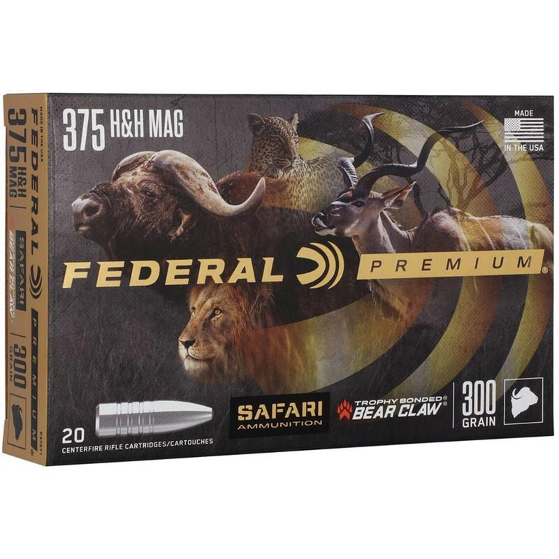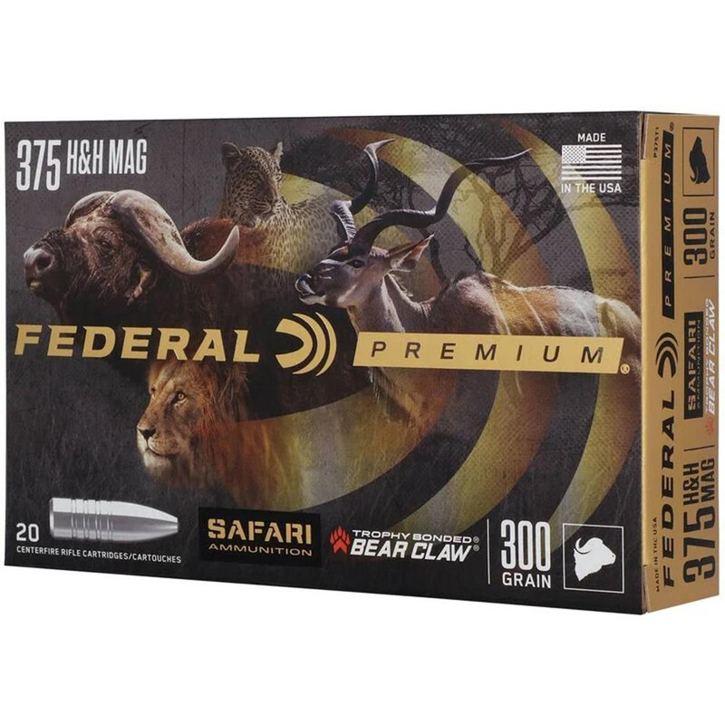 Federal Premium Safari Cape-Shok .375 H&H Mag 300gr Trophy Bonded Bear Claw Rifle Ammo, 20/Box - P375T1