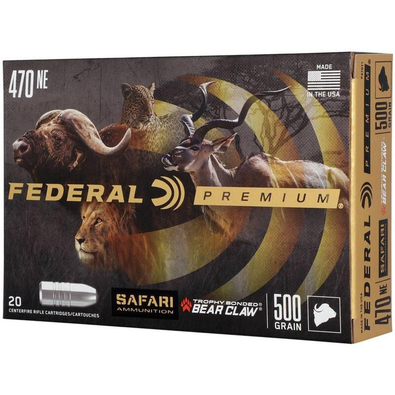 Federal Premium Safari Cape-Shok 470 Nitro Express 500gr Trophy Bonded Bear Claw Rifle Ammo, 20rd Box - P470T1