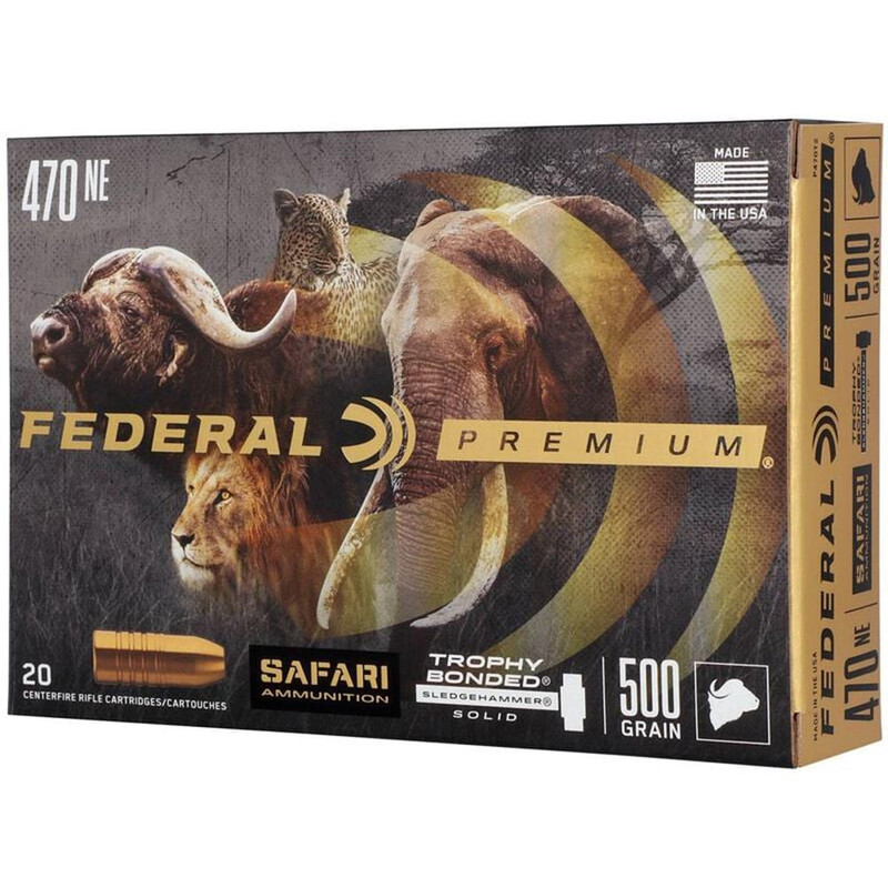 Federal Premium Safari Cape-Shok .470 Nitro Express 500gr Trophy Bonded Sledgehammer Solid Rifle Ammunition, 20/Box - P470T2