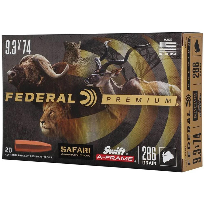 Federal Premium Safari Cape-Shok 9.3x74R 286gr Swift A Frame Rifle Ammunition, 20 Round Box - P9374SA