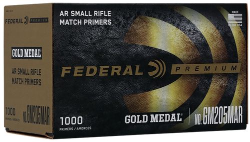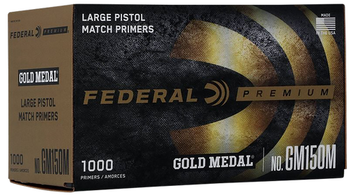 Federal Gold Medal Premium primers are manufactured to exacting tolerances for match-grade precision and consistency. Designed for large rifle applications, these primers deliver reliable ignition and are built to extremely tight tolerances favored by competitive shooters. Packaged with 1,000 primers per box.
