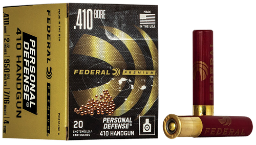 Federal Premium Personal Defense 410 Gauge 3" shotshells deliver 5 pellets of 000 buckshot at 775 fps, designed specifically for .410 handgun self-defense and home defense applications. The customized hull design and optimal brass thickness ensure reliable performance and smooth extraction. These copper-plated lead pellets provide excellent defensive patterns with high-energy delivery.