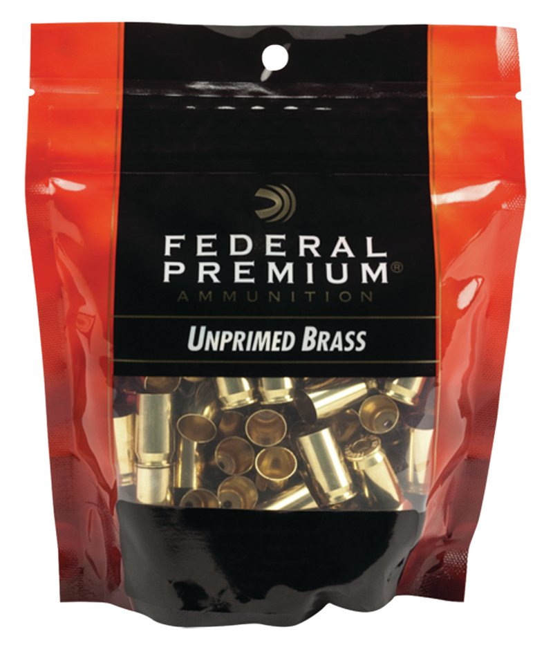 Federal Premium unprimed brass handgun cartridge cases designed for reloading 40 S&W ammunition. These corrosion-resistant brass cases can withstand high pressures and are reloadable multiple times. Sold in bags of 100 cases.