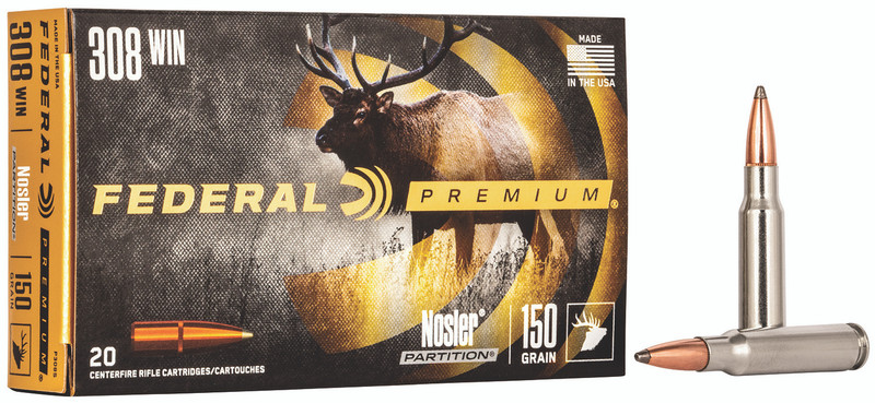 Federal Premium Vital-Shok .308 Win 150gr Nosler Partition Rifle Ammunition, 20/Box - P308S