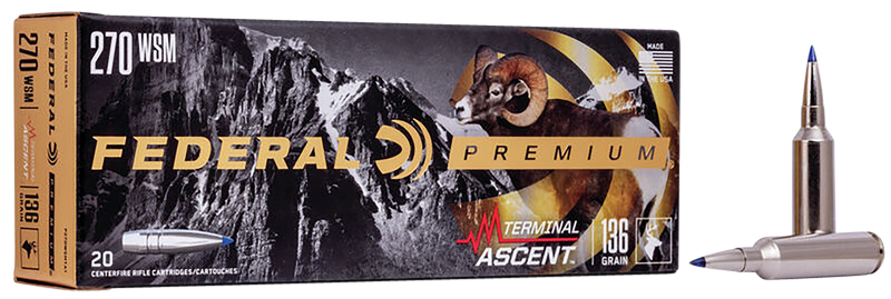 Federal Premium Terminal Ascent 270 WSM 136gr Rifle Ammunition, 20rd Box - P270WSMTA1