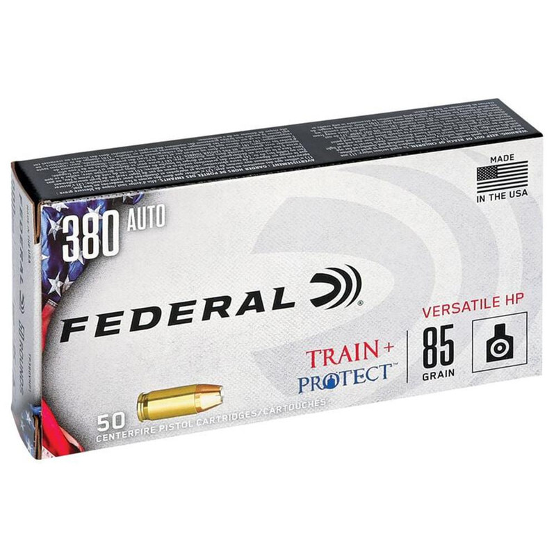 Federal Train + Protect .380 ACP 85gr Versatile Hollow Point Handgun Ammo, 50 Rounds - TP380VHP1