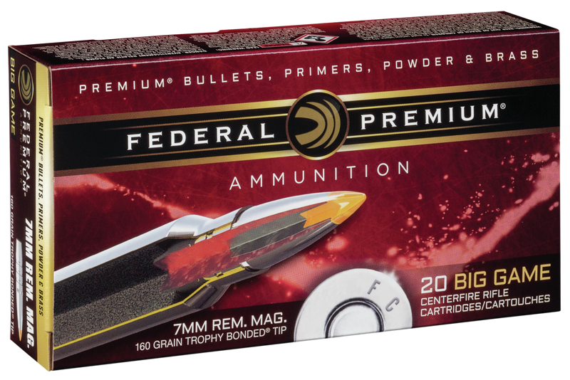 Federal Premium 7mm Rem Mag 160gr Trophy Bonded Tip Rifle Ammo, 20rd Box - P7RTT1
