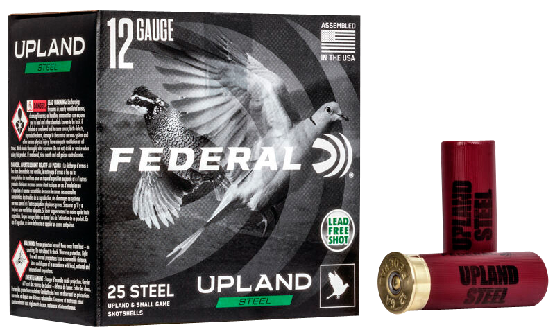 Federal Upland Steel shotshells are loaded with quality steel shot in 12 gauge 2.75" cases, featuring 1 oz of #7.5 shot at 1375 fps muzzle velocity. Designed for upland game hunting and dove hunting, these low brass loads deliver reliable performance and consistent patterns. Steel shot makes them suitable for areas requiring non-lead ammunition.
