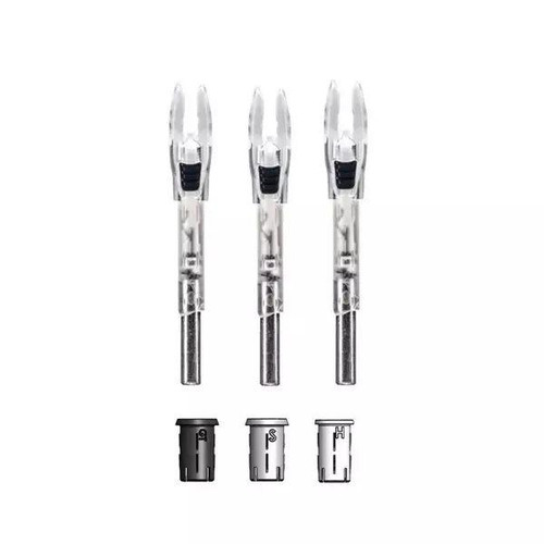 Lighted nock designed for archery arrows with strobing red and green LED features for improved visibility and tracking during low-light conditions. Constructed from durable polycarbonate that is waterproof and shock-resistant. Compatible with X, H, S, and GT arrow shafts with different inner diameters (.204 ID to .246 ID).