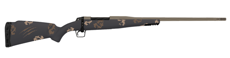 The Fierce Firearms Twisted Rogue is a 7mm PRC bolt-action rifle with a 22" twisted fluted threaded barrel and 3+1 capacity. Features include a Trigger Tech adjustable primary trigger, NIX side port muzzle brake, drilled and tapped receiver, integral bi-pod rail, and carbon fiber Sonora Ambush camo stock. Weighs 6.1 lbs with an overall length of 44.5".