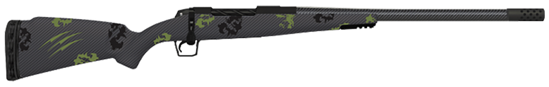 Fierce Firearms Twisted TI Rogue chambered in .308 Win features a 20" fluted, threaded barrel with black Cerakote finish and 1:10" twist rate. Built on a drilled and tapped titanium receiver with a TriggerTech adjustable primary trigger, fixed forest camo carbon fiber stock with LR negative comb, and NIX side port muzzle brake. Weighs 5.0-5.99 lbs with 3+1 capacity.
