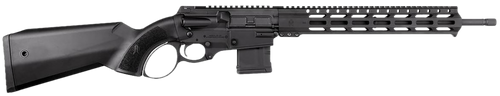 The FightLite Herring is a 5.56 NATO/.223 Rem lever-action rifle with a 16.25" threaded barrel and ambidextrous push-button safety. This Model 2024 features a brown synthetic stock, weighs 5.70 lbs, and has an overall length of 37.75". No sights are included, allowing for optic mounting.