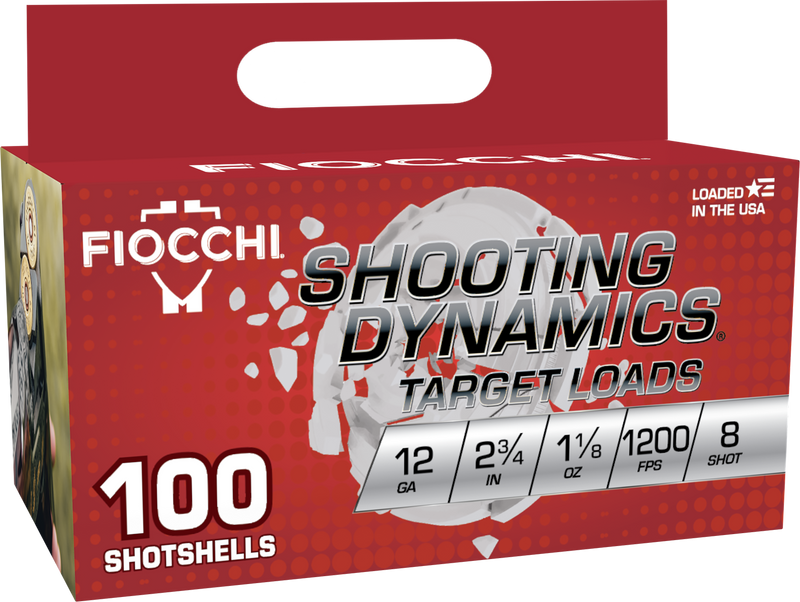 Fiocchi Shooting Dynamics shotshells are 12 gauge, 2.75" ammunition loaded with 1 1/8 oz of #8 lead shot, designed for target shooting and clay sports. These rounds feature a clear hull and produce a muzzle velocity of 1200 fps, making them suitable for practice and competitive shooting applications.