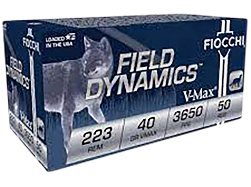 Fiocchi Field Dynamics 223 Rem 40gr Hornady V-Max Rifle Ammo, 50/Box - 223FHVB