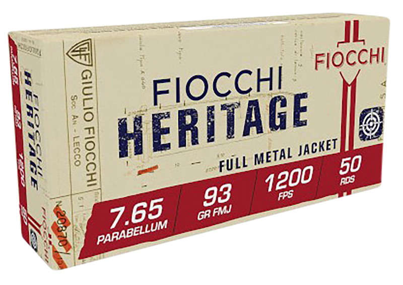 Fiocchi 765A Heritage 7.65x21mm Parabellum 93gr Full Metal Jacket Handgun Ammo, 50 Round Box - 765A