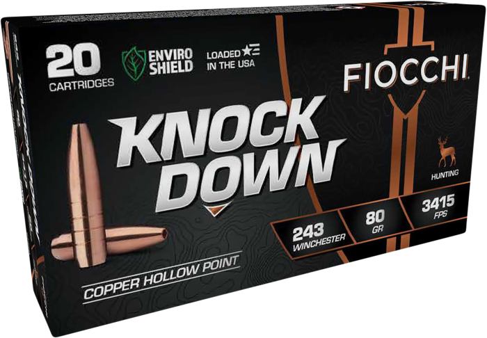 Fiocchi Backwoods Hunter 243 Win 80gr Copper Hollow Point Rifle Ammo, 20rd Box - 243BHC