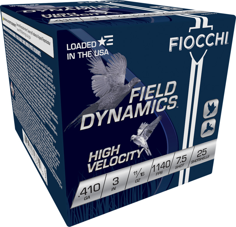 Fiocchi Field Dynamics High Velocity Plastic 410 Gauge 3" 11/16oz #7.5 Shot 25 Round Box - 410HV75