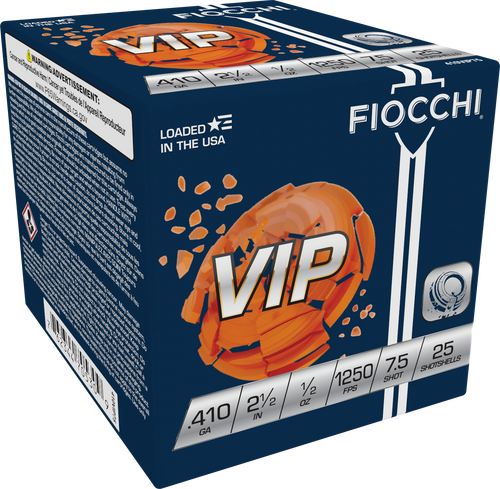 Fiocchi VIP Shotshell 410 Gauge 2.5" 1/2oz #7.5 Shot 250 Round Case - 410VIP75