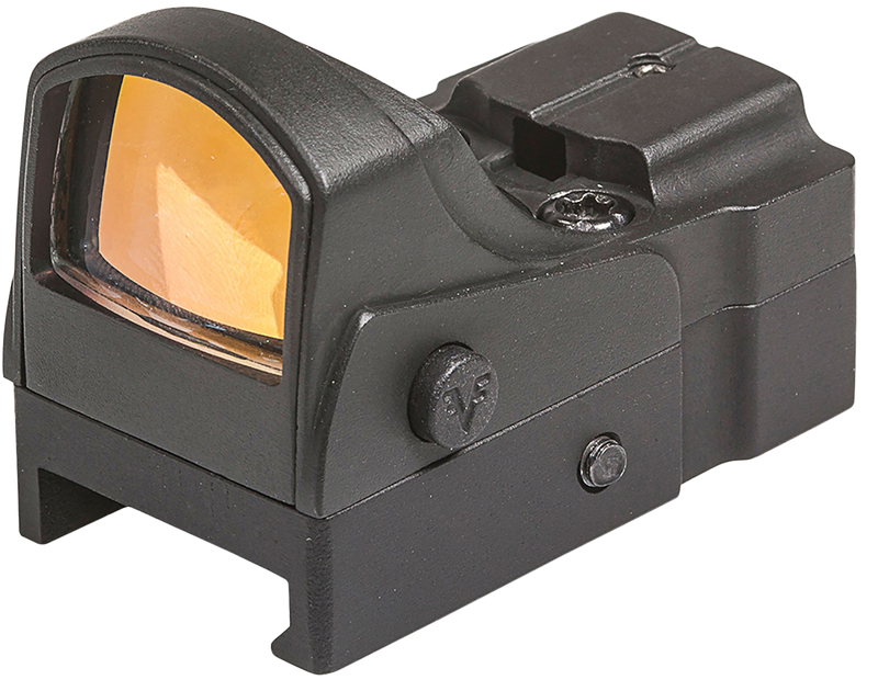 The Firefield Impact Mini Reflex Sight is a 1x magnification optic with a 16mm x 21mm objective lens and 5 MOA red dot reticle. This compact reflex sight features infinite eye relief, adjustable windage and elevation, and is weatherproof and shockproof. It weighs only 1 ounce and includes AR red optic coating.