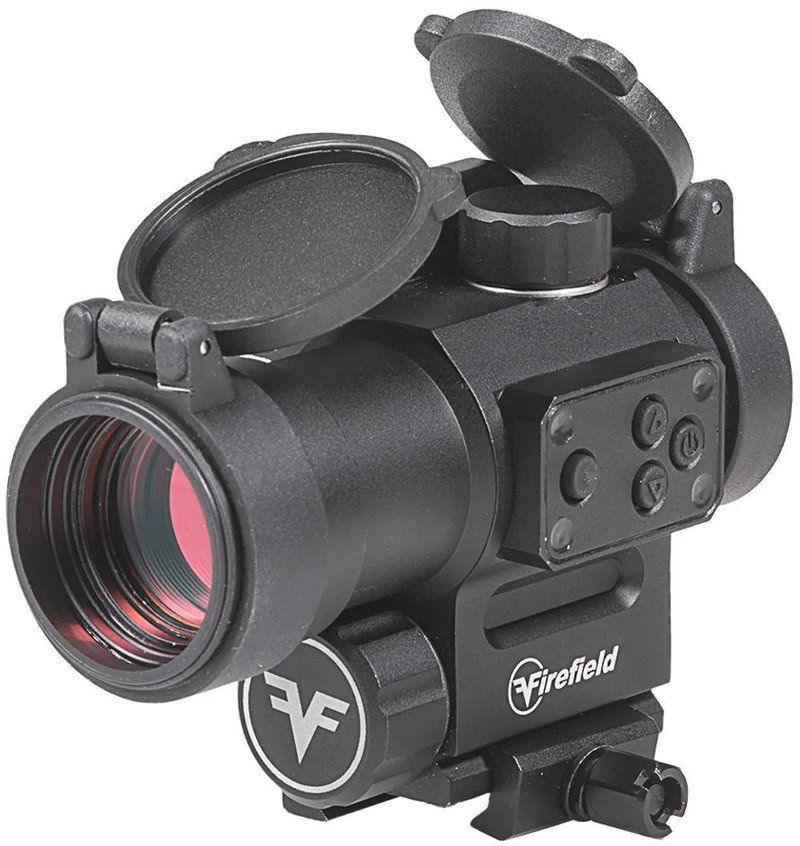 The Firefield Impulse is a 1x30 red dot sight with an illuminated red reticle and integrated red laser, designed for quick target acquisition across various lighting conditions. It features six brightness settings for optimal performance in low light scenarios and unlimited eye relief. Powered by a single CR123A battery, this aluminum sight is water-resistant (IP55) and suitable for tactical and hunting applications.