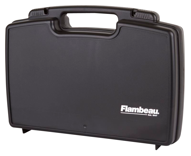 The Flambeau 6455SC Safe Shot Pistol Pack Case is a black polymer storage solution designed to safely hold and protect 2 pistols. Featuring foam padding and secure latches, this case measures 17.0" L x 12.3" W x 3.9" H and provides reliable protection for handguns during storage and transport.