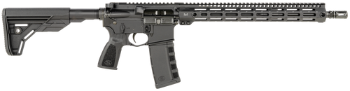Semi-automatic AR-platform rifle chambered in 5.56 NATO with a 16-inch nitrided CMV steel barrel and mid-length gas system designed for reduced recoil impulse. Features a 15-inch free-float M-LOK handguard, 6-position collapsible stock, mil-spec trigger, A2 flash hider, and threaded barrel. Weighs 6.6 lbs with overall length adjustable from 32.1" to 35.5".