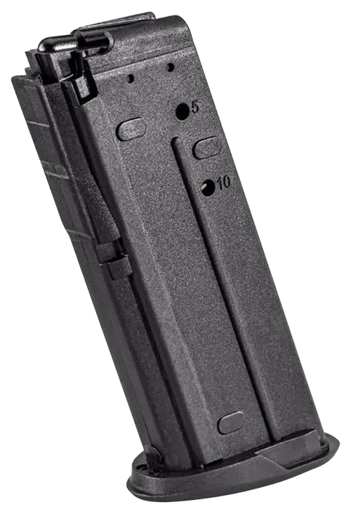 FN PS90 magazine chambered in 5.7x28mm with 10-round capacity. Features smoke polymer construction with dimensions of 12.7" length, 2.5" width, and 1.5" height, designed for compatibility with the PS90 rifle platform.