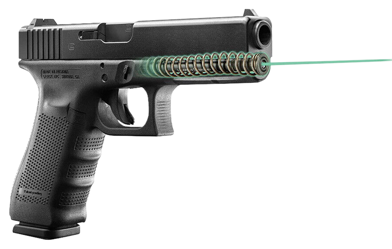 This guide rod laser integrates completely into your Glock's internal structure, allowing you to keep your preferred holster and tactical accessories unchanged. The 5mW green laser (520nm wavelength) projects a 0.63" dot at 20 yards with an effective range of 50 meters, and installation requires only field-stripping your firearm. Built to exceed Mil-Spec and Homeland Security durability standards including drop tests, sand, temperature extremes, and 20,000+ rounds of live fire.