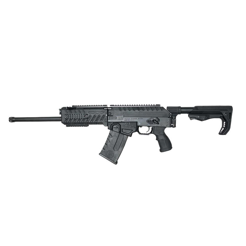 Semi-auto 12 gauge shotgun with 18.5" barrel and 5-round magazine capacity. Features a billet-machined carrier, ambidextrous safety and trigger guard, and an innovative infinite gas system designed to handle a wide range of 12-gauge loads. Picatinny rail optic-ready with synthetic stock.
