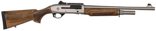 Semi-auto 12 gauge shotgun with 18.5" M22 x .75 threaded barrel and 5-round capacity. Features Fostech's infinite gas system, billet machined carrier, ambidextrous safety, and quick-change barrel system. Picatinny rail optic-ready with synthetic stock.