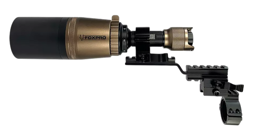 The Foxpro Bowfire is an LED weapon light featuring a rechargeable 18650 Li-ion battery for sustained operation. Designed as a compact accessory light with black and orange construction, it measures 15.3" in length and delivers reliable illumination for tactical applications.